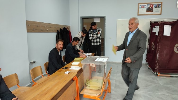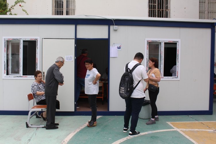 Depremlerin büyük yıkıma neden olduğu bazı bölgelerde de hasar gören okulların bahçelerinde kurulan konteynerlerde oy verme işlemi sürüyor.