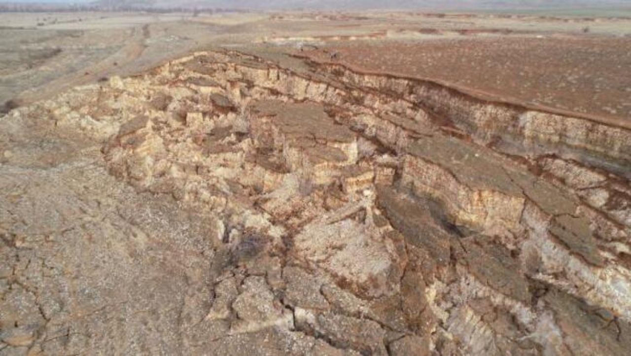 Görenleri hayrete düşüren dev yarıklar drone kamerası ile havadan görüntülendi.