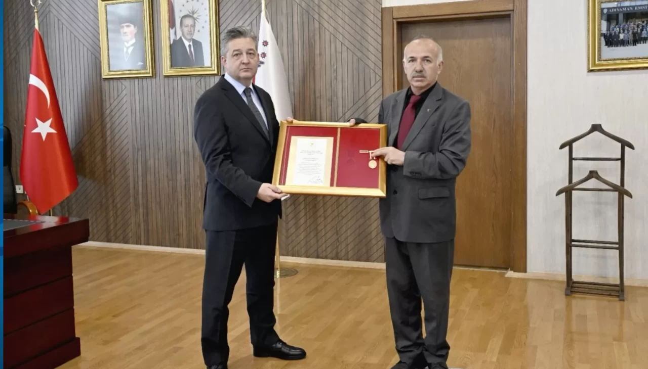Adıyaman İl Emniyet Müdürlüğü'nde yapılan programda, Tunceli'de teröristlerle çatışma sırasında gazi olan Cafer Karakuş'un talebi sonrası depremde kaybolan madalyasının yerine yenisi hazırlandı.