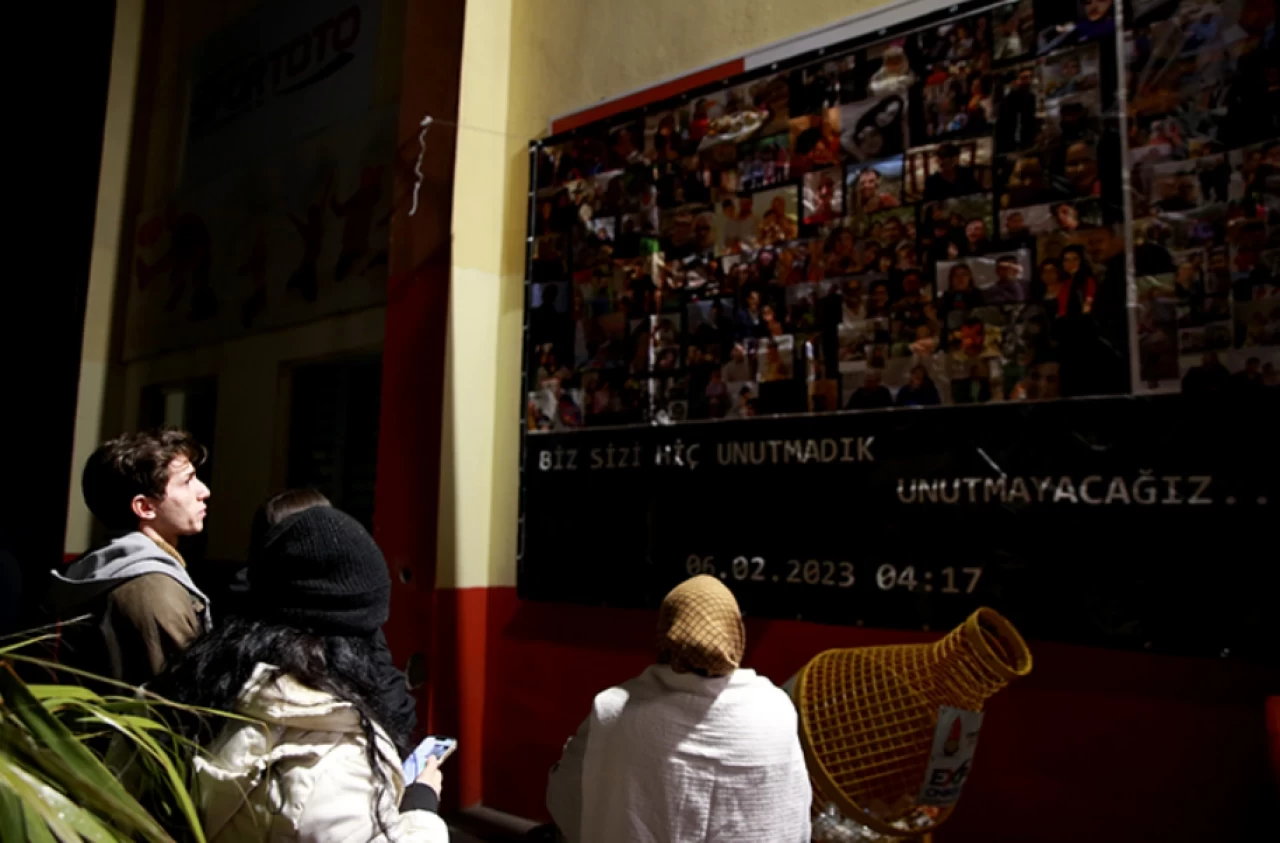 Asrın felaketinde vefat edenlerin fotoğraflarının duvara asıldığı etkinlikte, depremi yansıtan görüntüler izlendi.