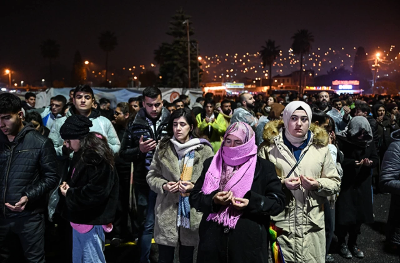 Cumhuriyet Meydanı'nda toplananlar, saygı duruşunda bulundu, depremde hayatını kaybedenler için dua etti.