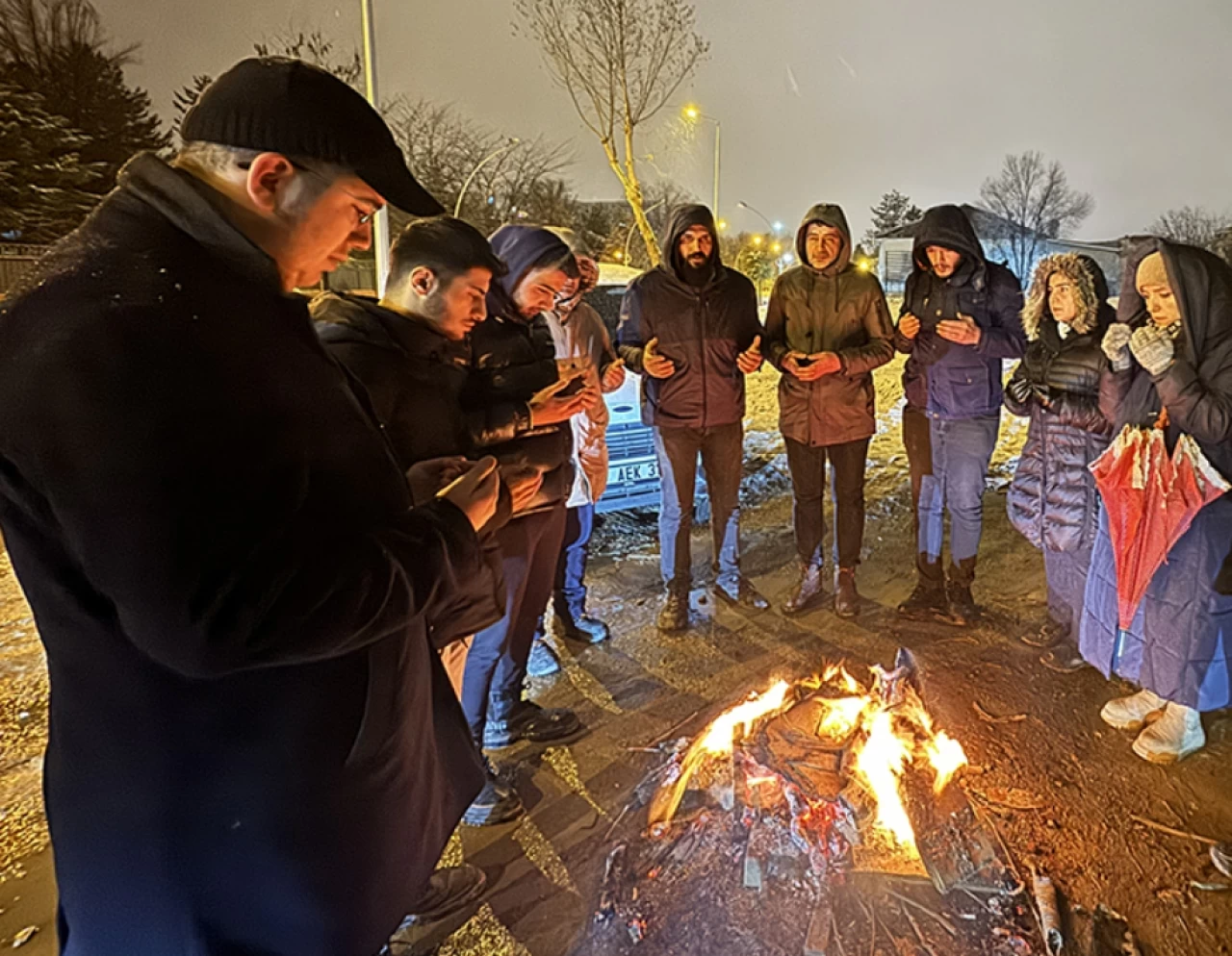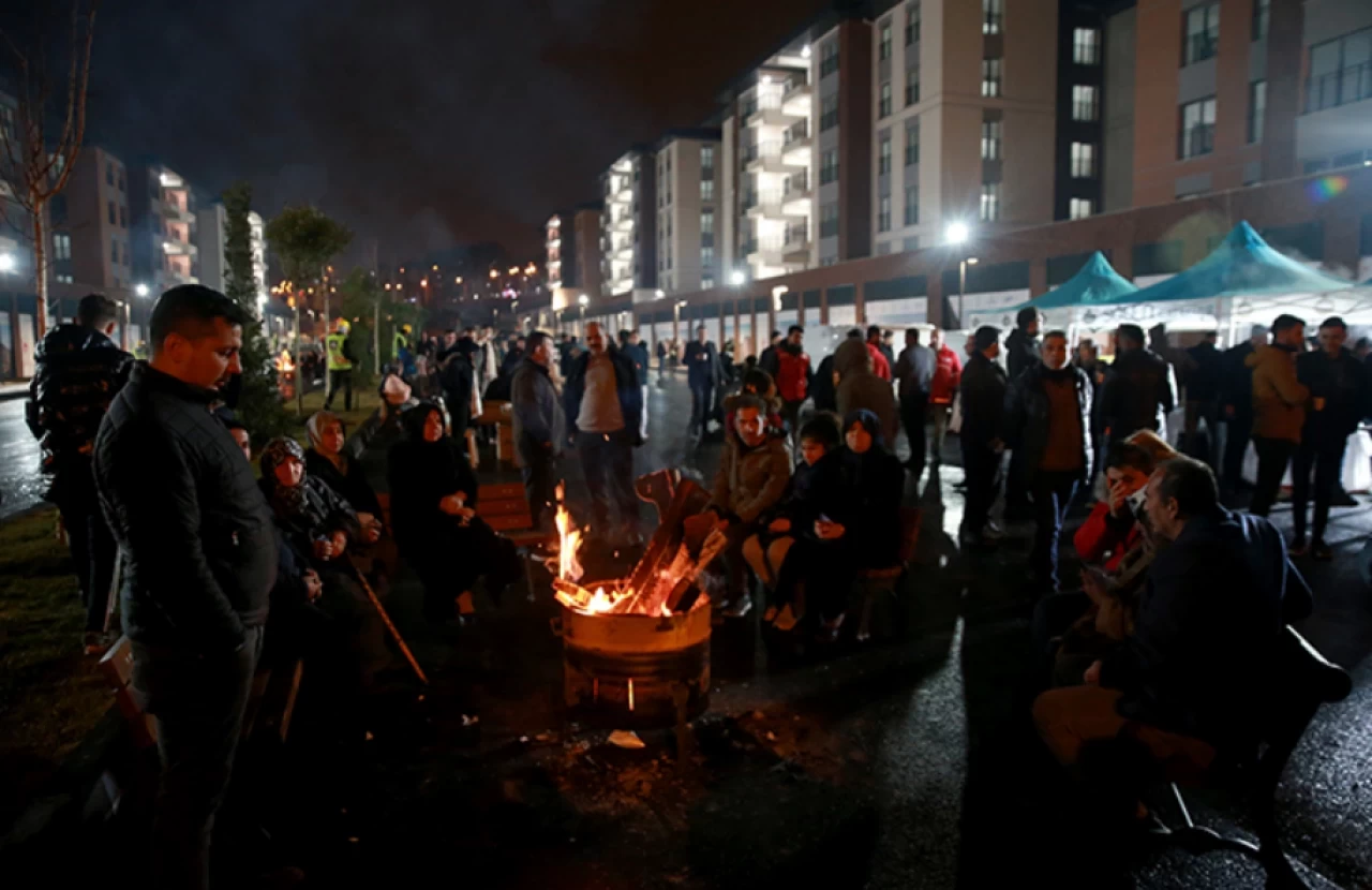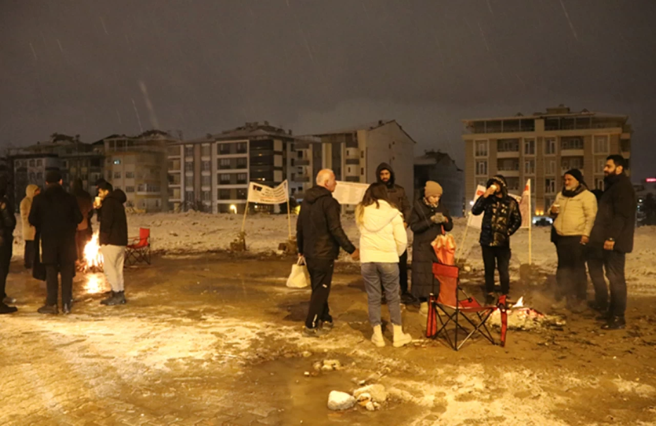 12 bloku yıkılan Ebrar Sitesi'nin yerine inşa edilen konutların önüne gelen aileler de burada ateş başında nöbet tuttu.