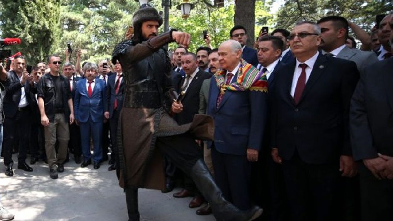 Ardından Söğüt Belediyesine geçen Bahçeli, mehter takımı gösterisiyle karşılandı.