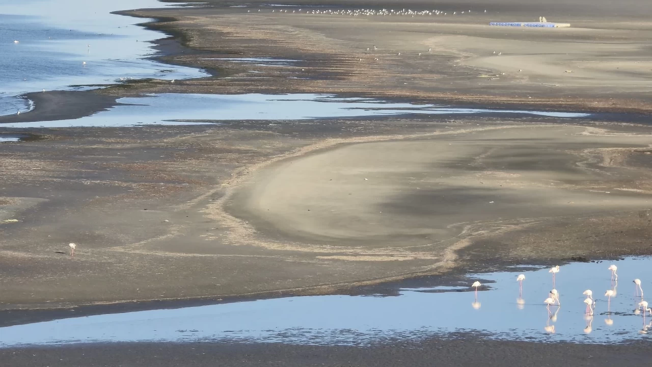 Birçok kuşa ev sahipliği yapan Karşıyaka Azmağı'nda da suların çekildiği gözlendi.