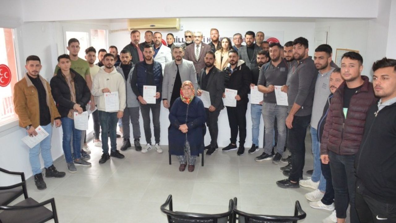 Konuşmaların ardından partiye yeni üye olan gençlere rozetleri MHP İl Başkanı Alıcık, İlçe Başkanı Sağdıç ve ilçe yöneticileri tarafından takıldı.