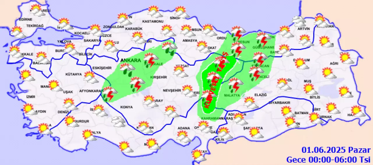 Yağışların Güney ve İç Ege ve Batı Akdeniz’in iç kesimleri, İç Anadolu’nun kuzeybatısı, Batı Karadeniz’in iç kesimleri ile gece saatlerinden sonra Sivas çevreleri, Kayseri'nin doğusu ve Kahramanmaraş'ın kuzey kesimlerinin yerel olmak üzere kuvvetli olması beklendiğinden yaşanabilecek olumsuzluklara karşı dikkatli ve tedbirli olunması gerekmektedir.