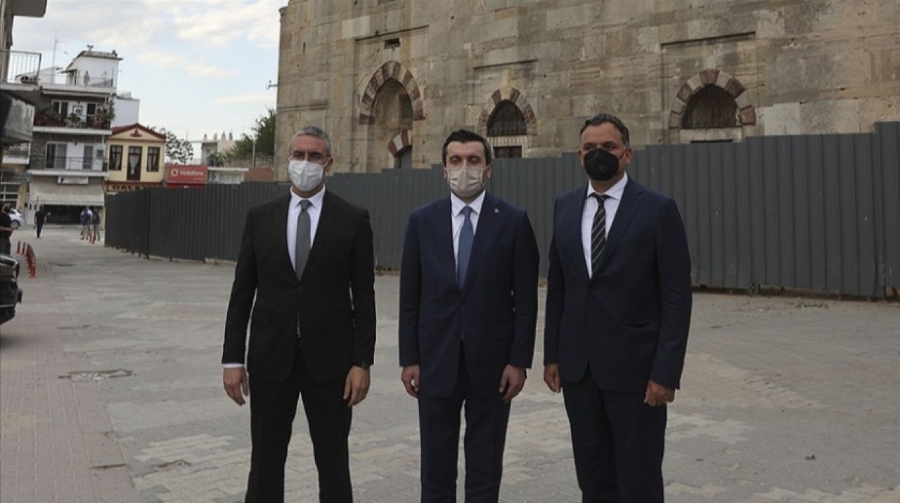Batı Trakya programının son ayağı olan Dimetoka'da, Avrupa'daki en önemli Türk-İslam eserlerinden Çelebi Sultan Mehmet Camii'nde incelemelerde bulunan Kıran, 2017'deki yangın sonrası başlayan restorasyon çalışmaları hakkında yetkililerden bilgi aldı.