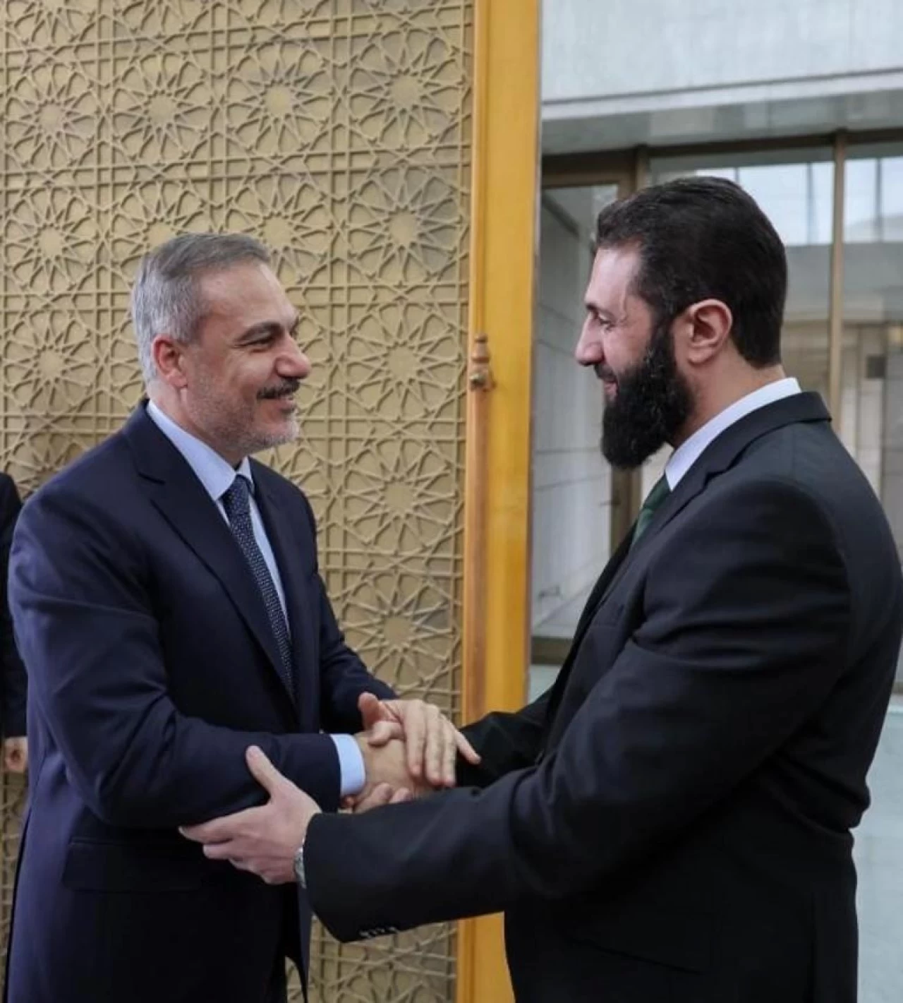Diplomatik kaynaklardan edinilen bilgiye göre Fidan, Şam'a yaptığı ziyaret kapsamında Şera ile görüştü. Görüşmede Dışişleri Bakan Yardımcısı Nuh Yılmaz, Türkiye'nin Şam Büyükelçiliği Geçici Maslahatgüzarı Burhan Köroğlu ve Suriye geçici hükümetinin Dışişleri Bakanlığı görevine getirilen Esaad Hasan Şeyban da yer aldı.