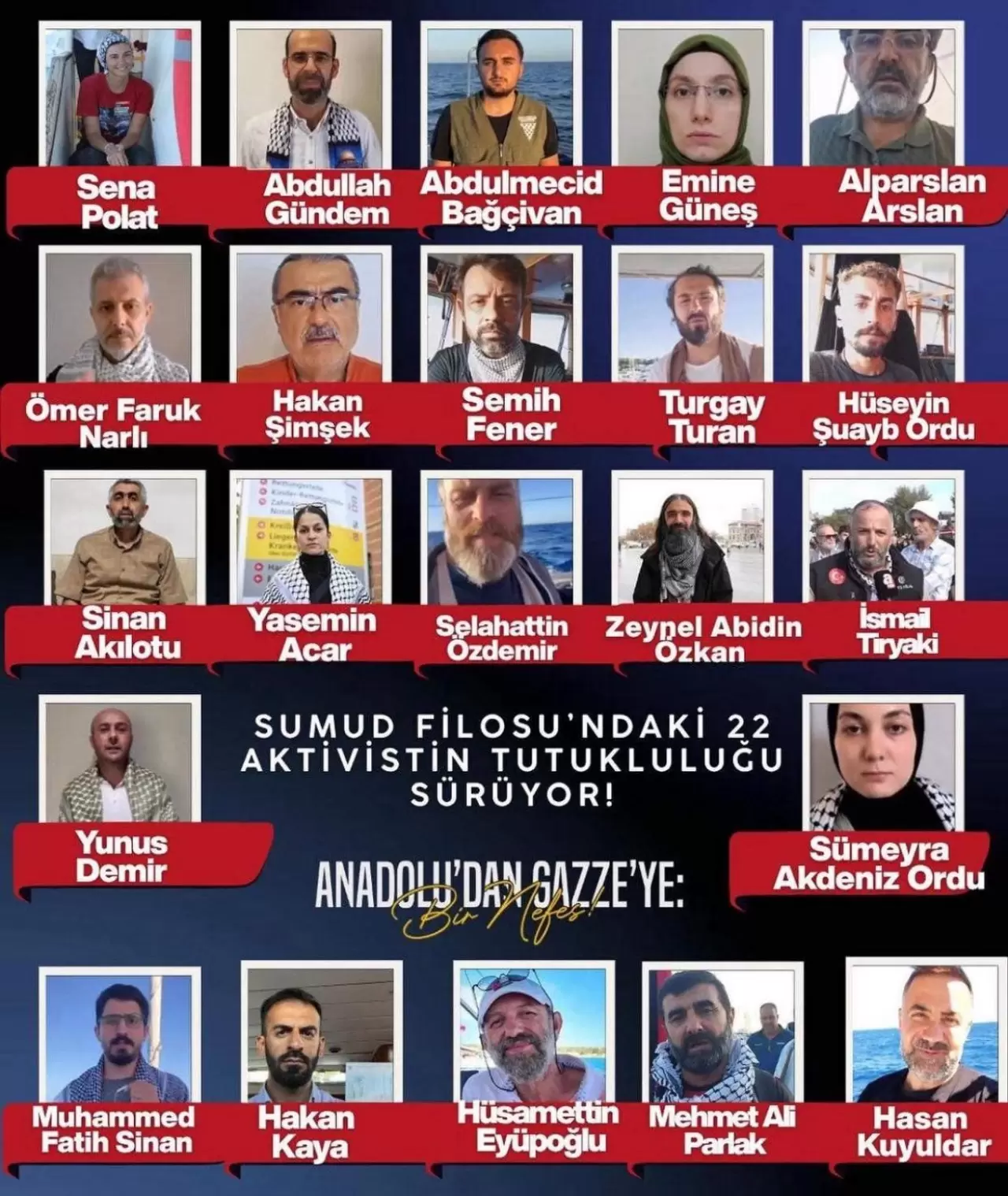 "Dün koğuşta arkadaşlarla konuşurken dedim ki, Türkiye bizi burada bırakmaz, uçak gönderir ve yarın aldırır dedim. Ama bir şeyi unutmuştum. Bizi aldırdı, bizim yanımıza da diğer 44 ülkenin vatandaşını aldırdı. İşte büyük Türkiye'nin fotoğrafı! Ben gözyaşlarımı tutamıyorum. Biz bir şeyi başardık. Sumud Filosu'nun amaçlarından bir tanesi dünyayı duyurmaktı. Bunu başardık. Ama bir konuda üzgünüm; o Gazze sahilinde bizi bekleyen, oyuncaklarını bekleyen, çikolatasını bekleyen çocuklara ulaşamadık. Ama inşallah tekrar geleceğiz. Dünya ayağa kalktı. Ben Türkiye'mize, Sayın Cumhurbaşkanımıza, emeği geçen herkese teşekkür ediyorum ve buradaki arkadaşlarımıza, hepsinden Allah razı olsun. İşte büyük Türkiye'nin fotoğrafı! Herkese selamlar gönderiyorum, başardık inşallah."