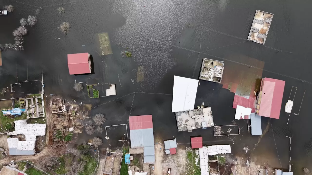 Diyarbakır'ın Kocaköy ilçesinde etkili olan yağışlar nedeniyle su seviyesi yükselen Ambar Barajı’nın kapaklarının açılmasıyla su, kırsal Şerifoğulları Mahallesi'ne ulaştı. Daha önce boşaltılan ve su altında kalan 10 ev, dronla görüntülendi.