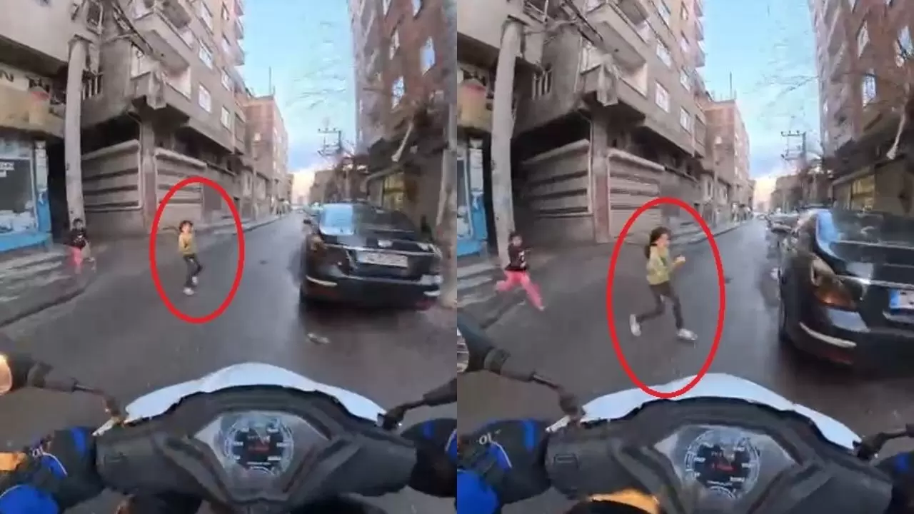 Bu sırada caddede motosikletiyle ilerleyen motokurye Danyal Eryılmaz, çocuğu fark ederek aniden durdu. Eryılmaz’ın refleksi sayesinde çocuk, motosikletin altında kalmaktan son anda kurtuldu.