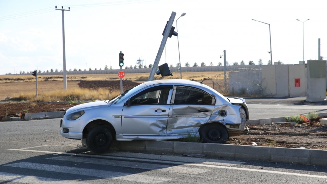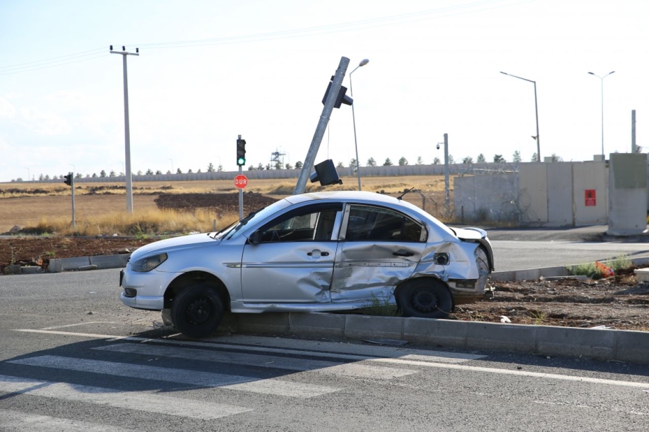 Savrulan otomobil sinyalizasyon direğine çarparak refüje çıktı.