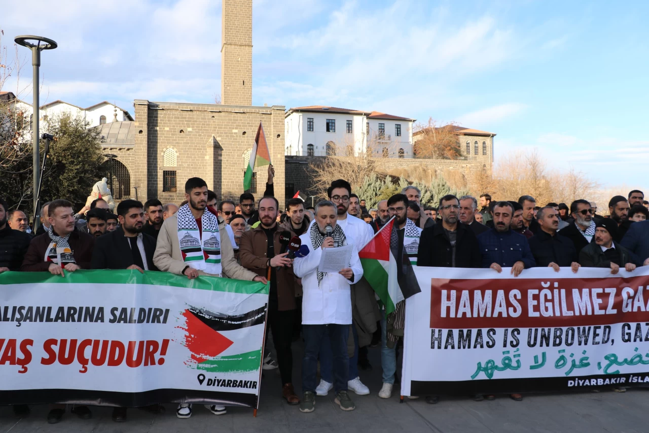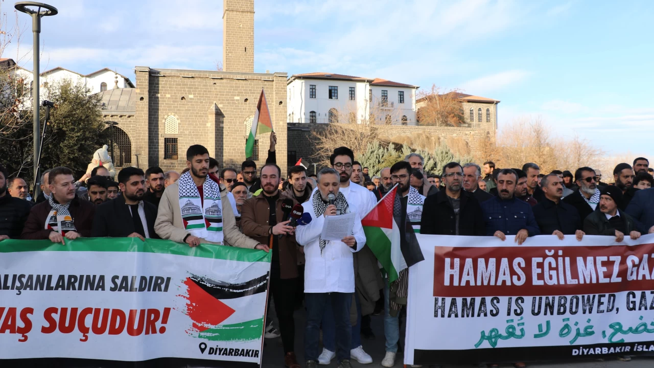 Merkez Sur ilçesinde bulunan Dört Ayaklı Minare önünde toplanan grup, daha sonra Hz. Süleyman Camii'ne kadar slogan atarak yürüdü. Yürüyüşe, çevredeki vatandaşlarda alkış çalarak eşlik etti. Burada, grup adına açıklama yapan Doç. Dr. Eşref Araç, sağlık çalışanları olarak geçtiğimiz günlerde Gazzeli bir meslektaşları Dr. Hussam Abu Safiye'nin İsrail tarafından zorla gözaltına alınmasını kınamak üzere bir araya toplandıklarını söyledi.