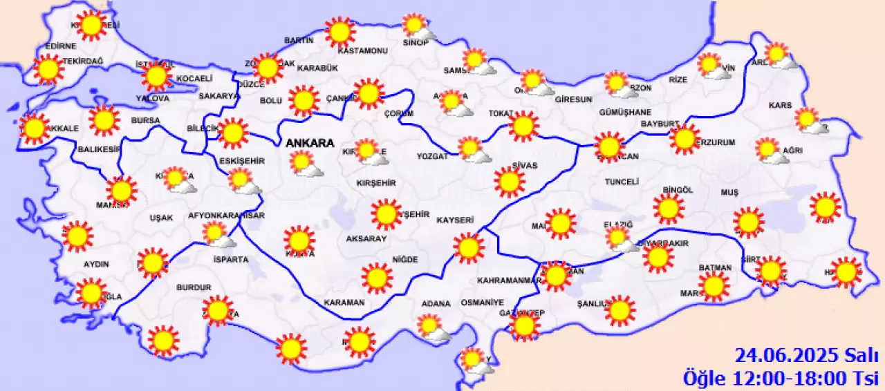 Yapılan açıklamada, "Son meteorolojik değerlendirmelere göre; bölgemizde halen mevsim normalleri civarında seyreden hava sıcaklıklarının, 24 Haziran 2025 Salı gününden itibaren artarak mevsim normallerinin 6 ila 9 derece üzerine çıkması bekleniyor" denildi.