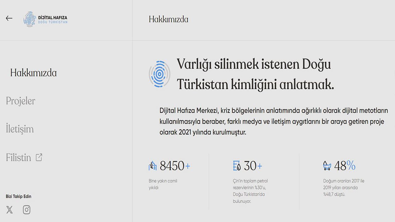 Dijital Hafıza Merkezi, Doğu Türkistan'ın kültürünün dijital ortamda korunması, unutulmaması ve gelecek nesillere aktarılmasını hedefliyor. Merkez, kolay erişim sağlanan arayüzü ve çok sayıda özgün içeriğiyle Doğu Türkistan’a dair büyük bilgi havuzu niteliği taşıyor.