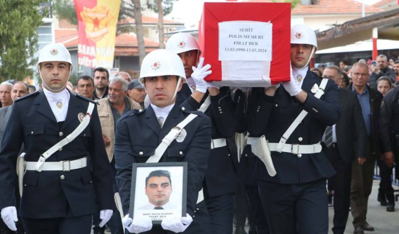 Cumhurbaşkanı Recep Tayyip Erdoğan'ın koruma ekibinde görevli olan ve Şırnak'ın İdil ilçesinde önceki gün meydana gelen trafik kazası sonucu şehit düşen polis memuru Fırat Der’in cenazesi, Sarayköy Devlet Hastanesi morgundan alınıp, Atatürk Mahallesi Vatan Caddesi'ndeki ailesinin evine götürülüp, helallik alındı. Ardından şehit Der’in cenazesi, sirenler eşliğinde törenin yapıldığı Ağalar Camisi'ne götürüldü. Cenazede şehidin babası Cesim Der, annesi Serpil Der ve eşi Demet Der, Türk bayrağına sarılı tabuta sarılarak gözyaşı döktü. Demet Der, boynundaki kolyesine taktığı şehit eşinin yüzüğünü tören boyunca elinde tutup, öptü.