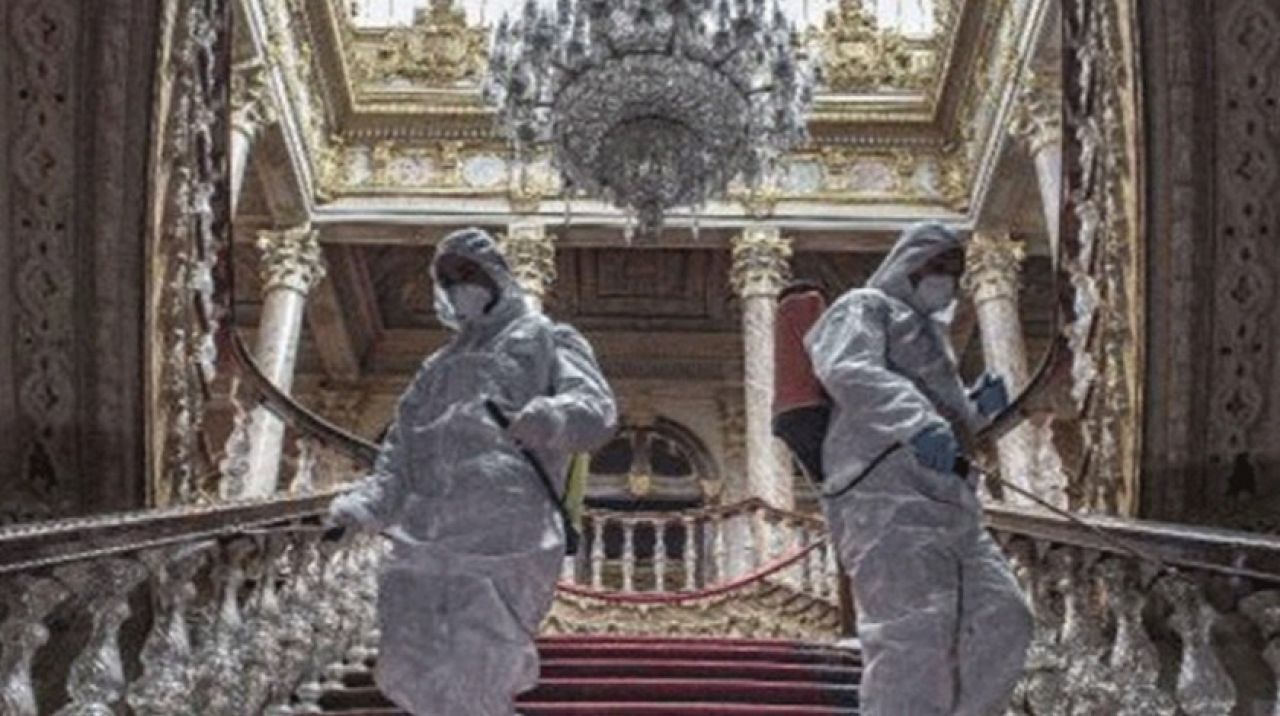 Dünyayı tehdit eden koronavirüse nedeniyle İstanbul'daki saraylar ve müzelerde dezenfeksiyon işlemleri artırıldı. Bu kapsamda Dolmabahçe Sarayı'nın bahçe ve iç kısımları ekipler tarafından ilaçlandı.