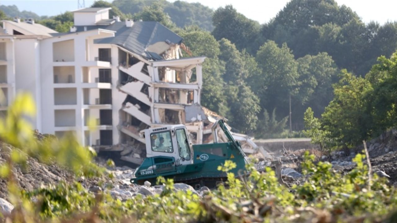 Bölgede DSİ'ye ait iş makineleri de dere yatağında sel sularıyla gelen ağaç, taş ve kaya parçaları ile çöpleri temizliyor.