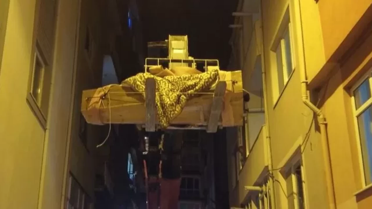 Evde yapılan ilk incelemelerin ardından, Özülkü’nün cansız bedeninin çıkarılması sırasında zorluk yaşandı. Yaklaşık 165 kilo olduğu öğrenilen cenazenin merdivenlerden indirilmesi mümkün olmayınca olay yerine vinç getirildi. Özel bir düzenekle apartmanın beşinci katına çıkarılan vinç, cenazeyi aşağıya güvenli bir şekilde indirdi.