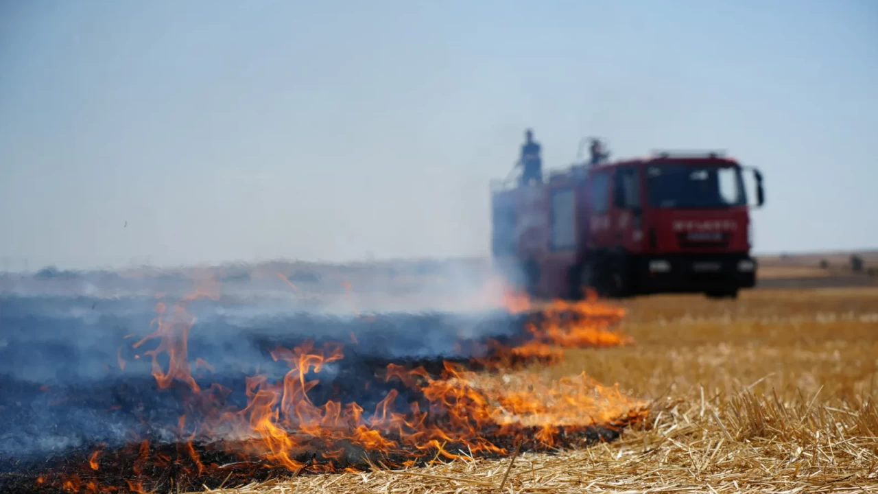 Edirne'de çıkan anız yangını, rüzgarın da etkisiyle kısa sürede büyüdü. İtfaiye ekiplerinin müdahalesiyle alevler ayçiçek tarlalarına ulaşmadan kontrol altına alındı.