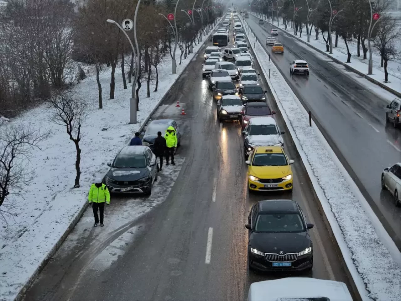 Edirne’de etkili olan kar yağışı ve buzlanma, zincirleme trafik kazalarına neden oldu. Kent genelinde yaşanan kazalarda 12 araç hasar görürken, bölgede trafik yoğunluğu oluştu. İhbar üzerine olay yerine çok sayıda trafik polisi sevk edildi.