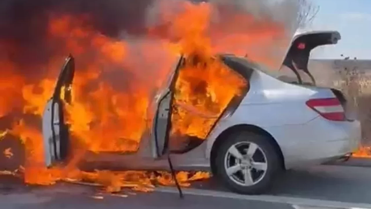 Edirne'ye günübirlik alışveriş için gelen Bulgaristan vatandaşının kullandığı otomobil, Kapıkule Sınır Kapısı yolunda seyir halindeyken bilinmeyen bir nedenle alev aldı.