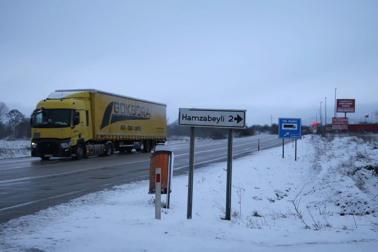 Bulgaristan'a ulaşımın sağlandığı Hamzabeyli Sınır Kapısı yolunda da etkisini gösteren kar yağışının ulaşımda olumsuzluğa neden olmaması için çalışma yürütülüyor.