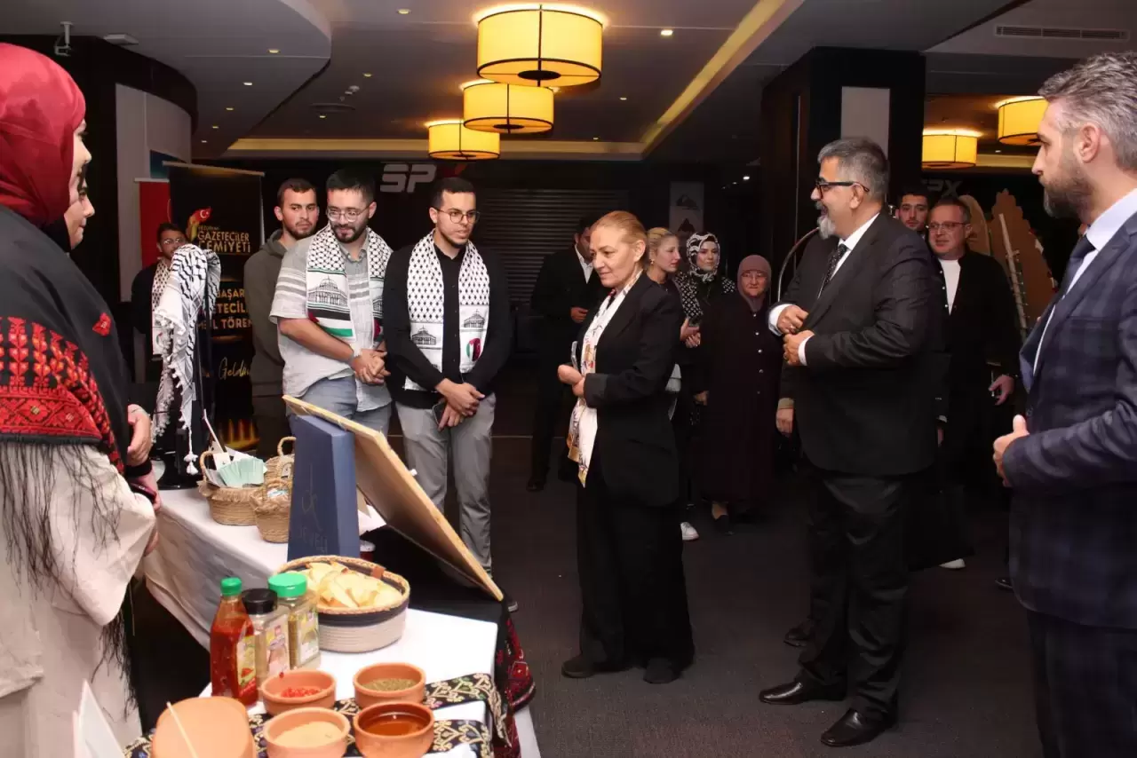 Erzurum’da yaşayan Filistinli öğrencilerin stant açtığı gecenin onur konuğu Filistinli gazeteci El Cezire TV muhabiri Ömer Abufayyad olurken, İsrail’in saldırılarında şehit düşen gazetecilere de “Basın Şeref Ödülü” verildi. Ödülü şehit gazeteciler adına Abufayyad aldı.