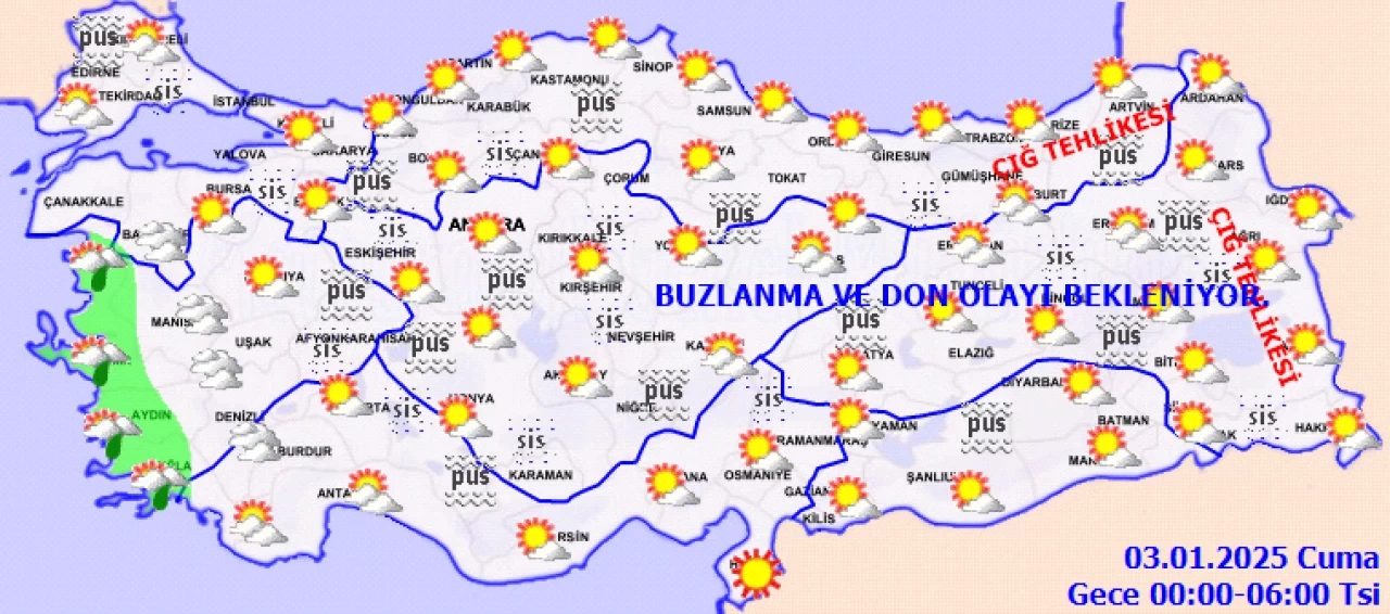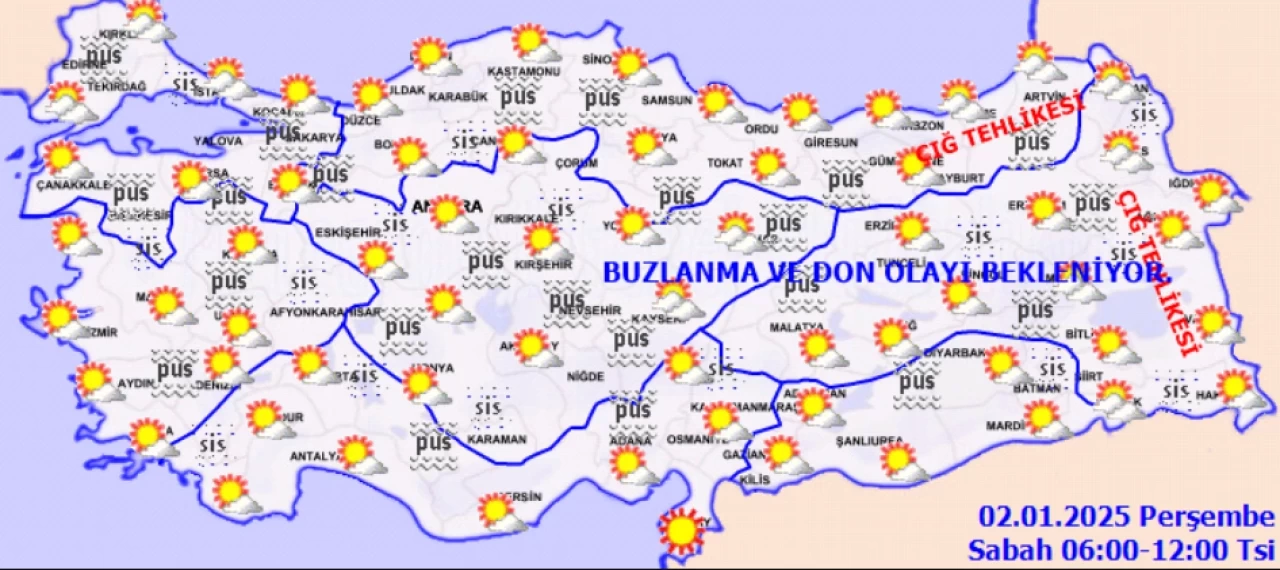 Doğu Karadeniz’in iç kesimlerinin yüksekleri ile Doğu Anadolu'nun dik ve eğimli yamaçlarında çığ tehlikesine karşı dikkatli olunması gerektiği belirtildi. Ayrıca, buzlanma ve don olaylarına karşı uyarılar yapıldı.