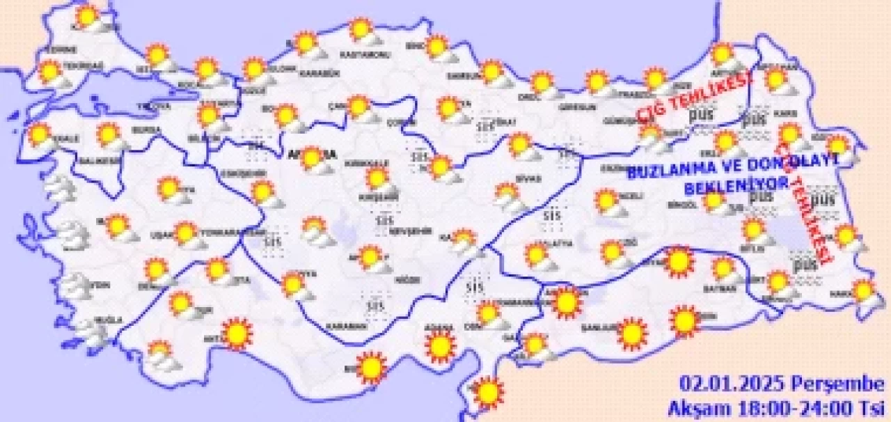 Parçalı ve az bulutlu geçeceği tahmin ediliyor. Gece ve sabah saatlerinde buzlanma ve don olayı ile birlikte pus ve yer yer sis bekleniyor.
