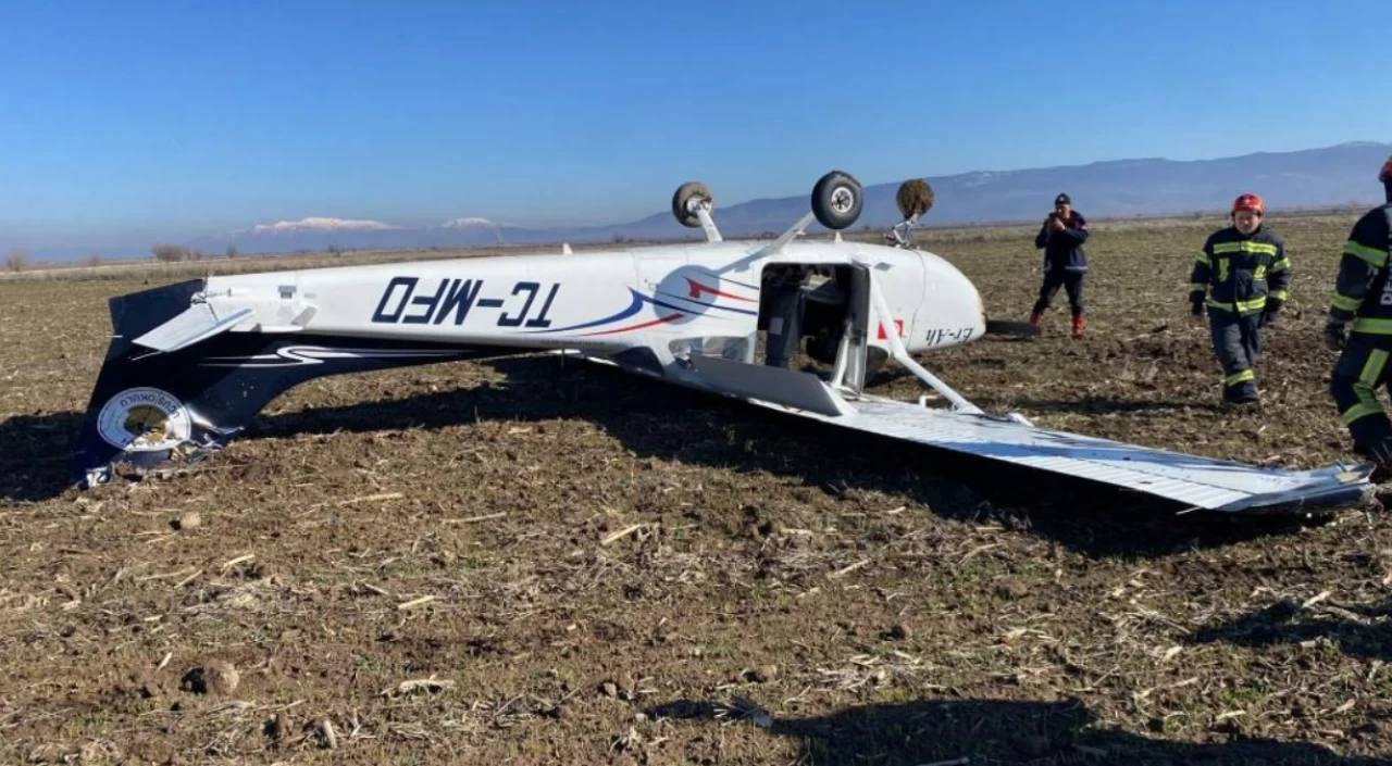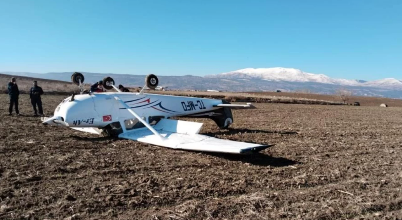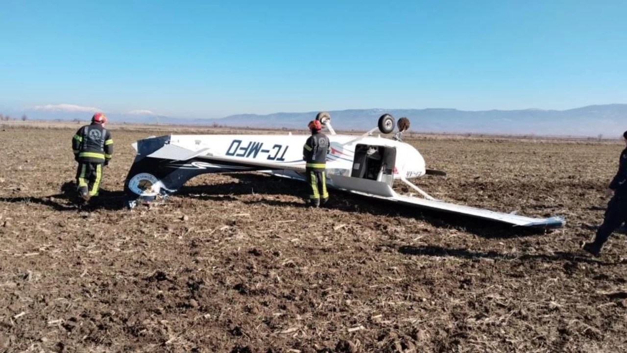 Sert iniş sırasında ters dönen uçak, çamura saplanarak durdu. Uçağın düşüşünü gören bir vatandaşın ihbarıyla bölgeye ekipler sevk edildi.