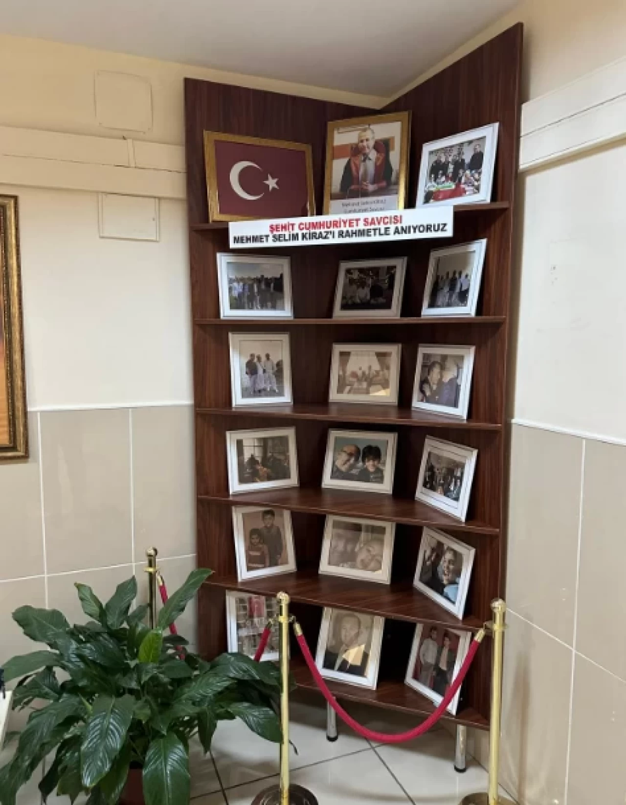 Şehit Cumhuriyet Savcısı Mehmet Selim Kiraz’ın anısını yaşatmak için Çatalca Adliyesi'nde hatıra köşesi oluşturuldu. Babası Hakkı Kiraz duygu dolu anlar yaşadı.