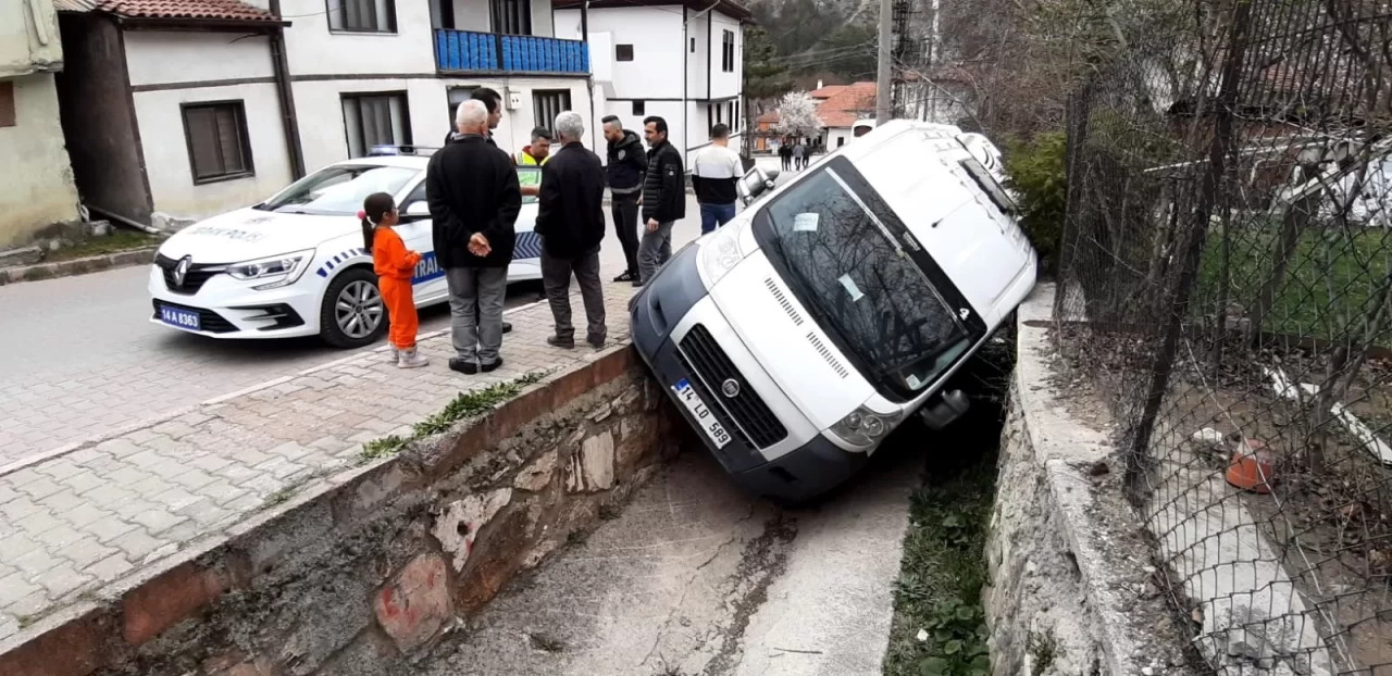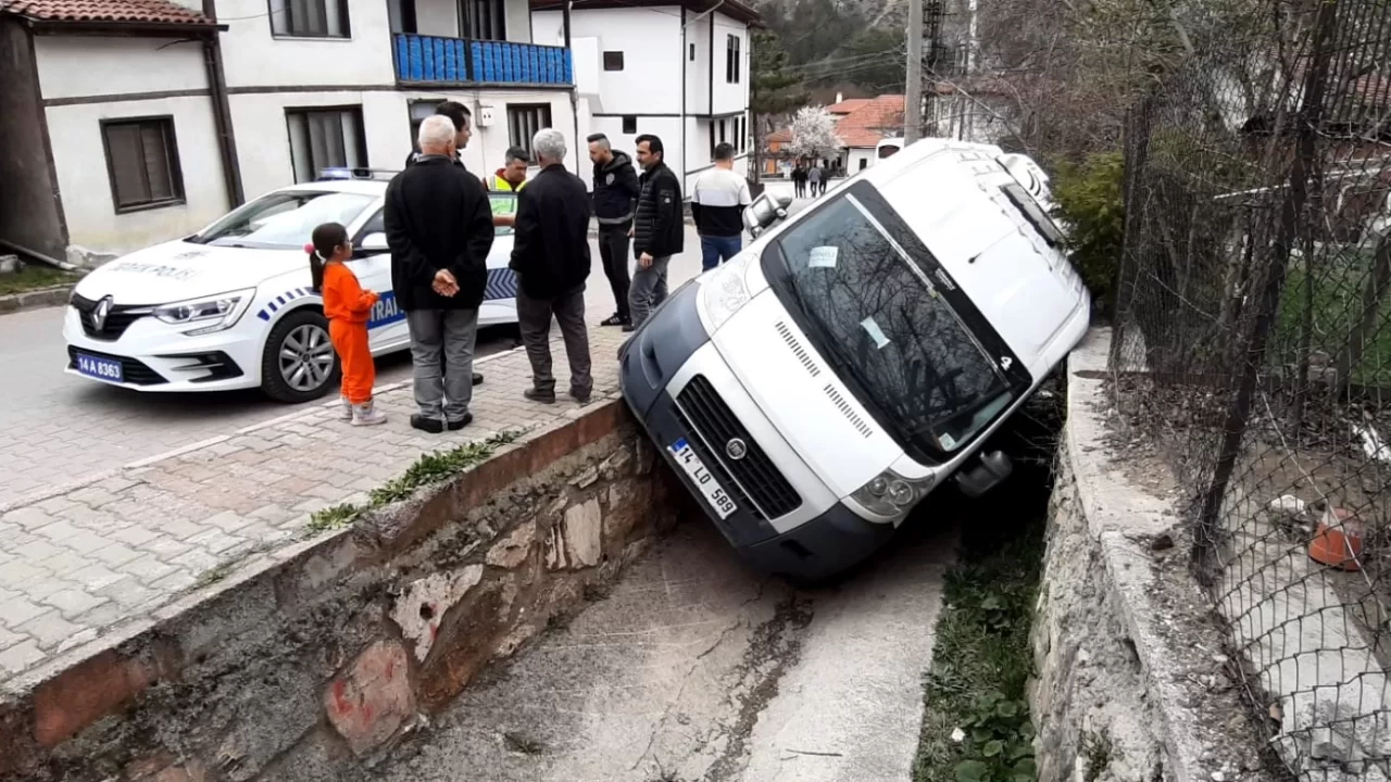 Bolu’nun Mudurnu ilçesinde sürücüsün el frenini çekmeyi unuttuğu öğrenci servis minibüsü geri geri gelerek kanala düştü. Kazada, servis içerisinde öğrenci bulunmazken, yoldan geçen birisinin olmaması da muhtemel faciayı önledi.