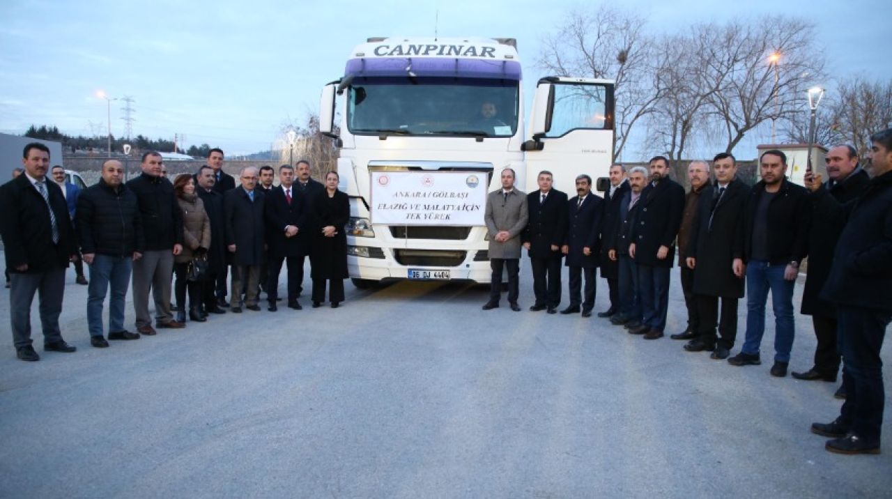 Yapılan konuşmaların ardından içlerinde yardım malzemesi olan 2 tır Elazığ ve Malatya’ya doğru yola çıkarken, 1 yardım tırının da daha sonra yola çıkacağı bildirildi. Gölbaşı Kaymakamlığı ve Gölbaşı Belediyesi’nin organizasyonuyla yapılan yardım tırlarında şu malzemeler yer aldı;