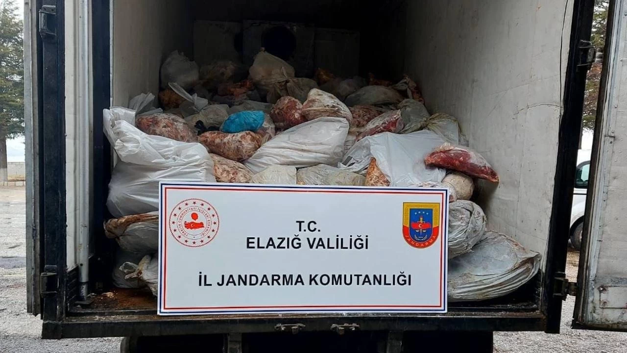 Aramada kamyonun kasasında Van'dan Elazığ'a getirildiği tespit edilen, irsaliye ve faturası bulunmayan 5 ton 880 kilogram kaçak et ele geçirildi.