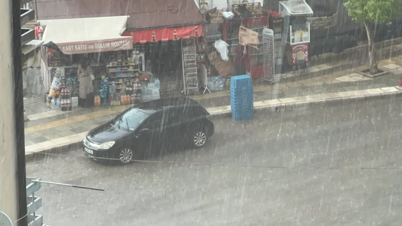 Elazığ’da öğle saatlerinde aniden bastıran dolu ve sağanak yağış, kentte hayatı olumsuz etkiledi. Misket büyüklüğündeki dolu taneleriyle birlikte gelen sağanak, özellikle cadde ve sokaklarda su birikintilerine yol açtı.