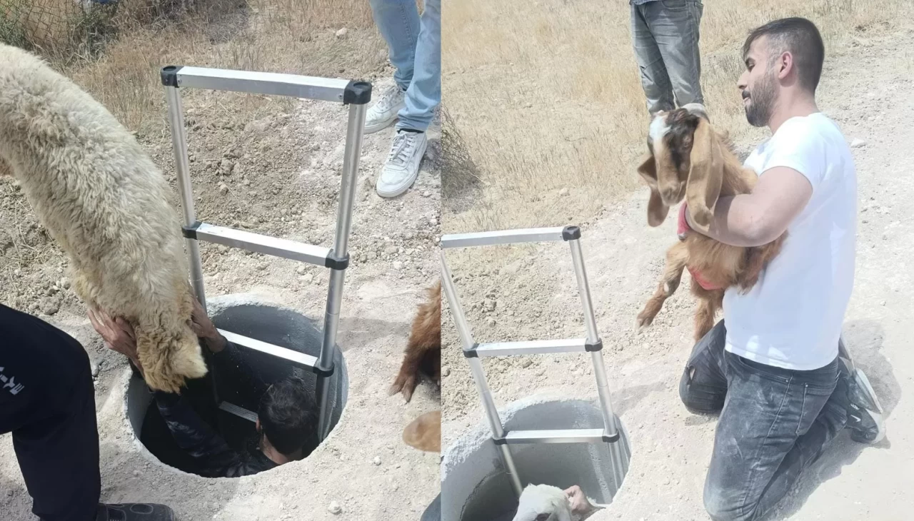 Elazığ’da kuyuya düşen keçi ve koyunları itfaiye kurtardı