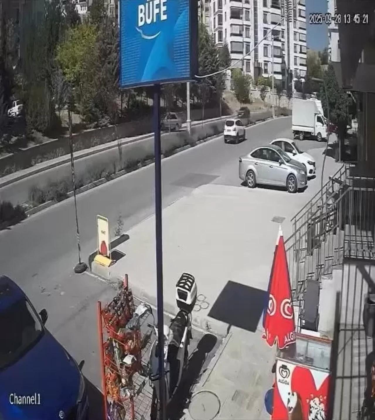 Polis ekipleri kaza yerinde inceleme yaptı. Kaza anı ise, bir iş yerinin güvenlik kamerasına saniye saniye yansıdı.