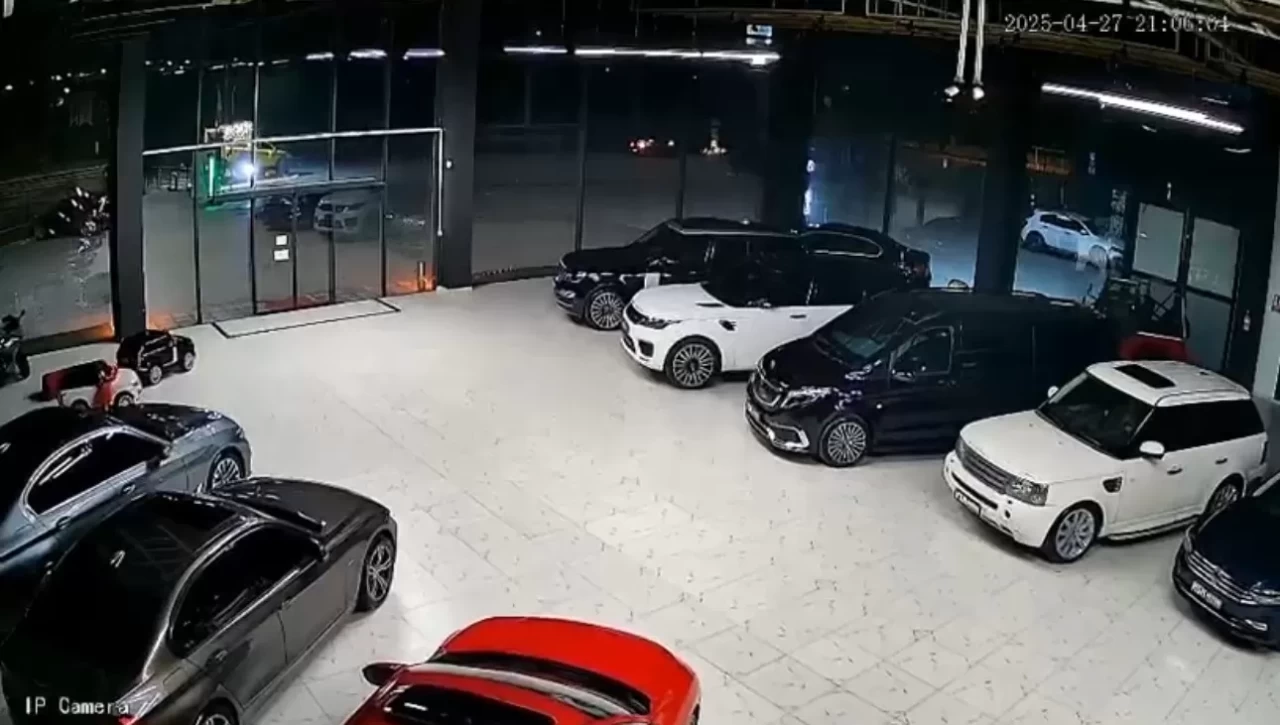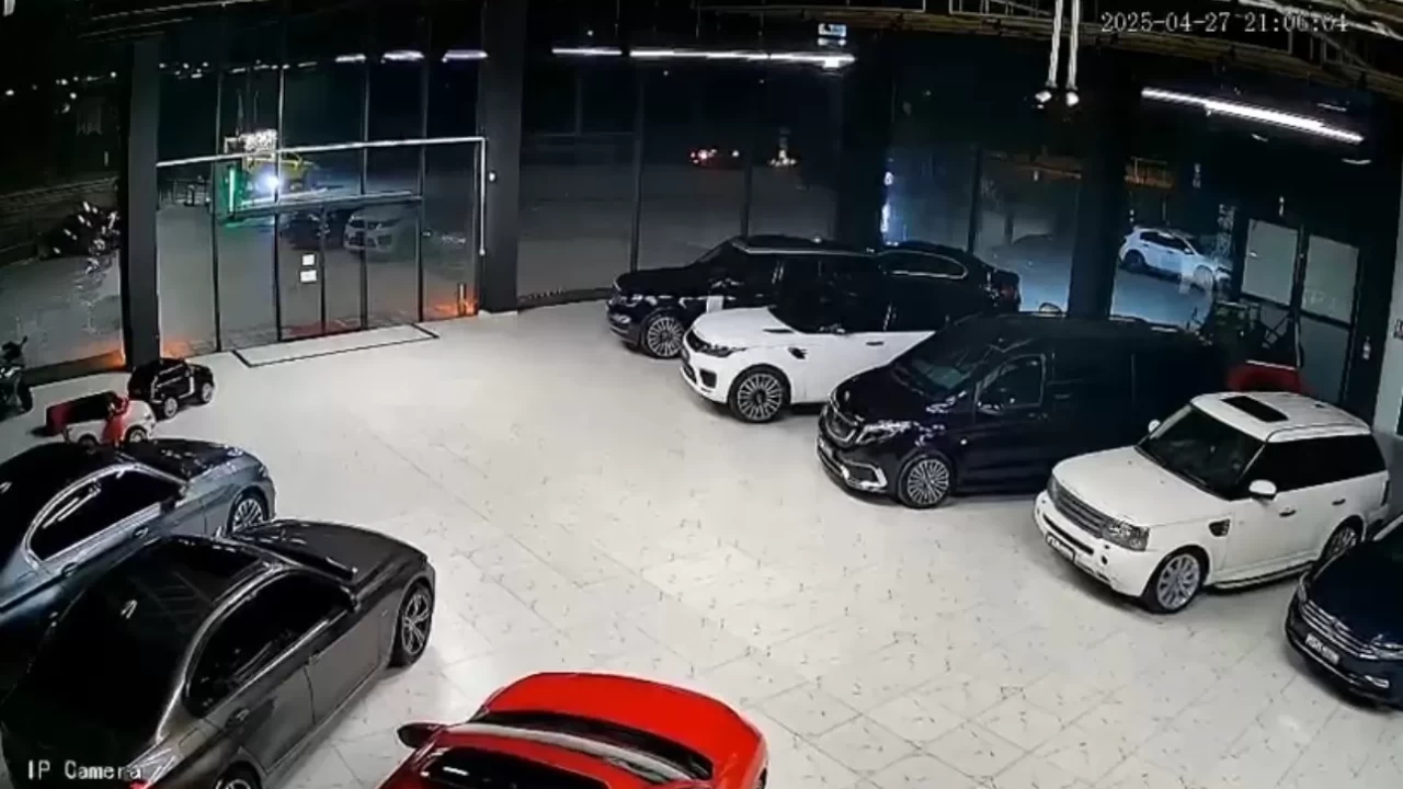 Elazığ'ın Sivrice ilçesinde meydana gelen 4,9 büyüklüğündeki deprem, bir oto galerideki güvenlik kameralarına yansıdı. Görüntülerde depremin etkisiyle araçların şiddetle sallandığı görüldü.