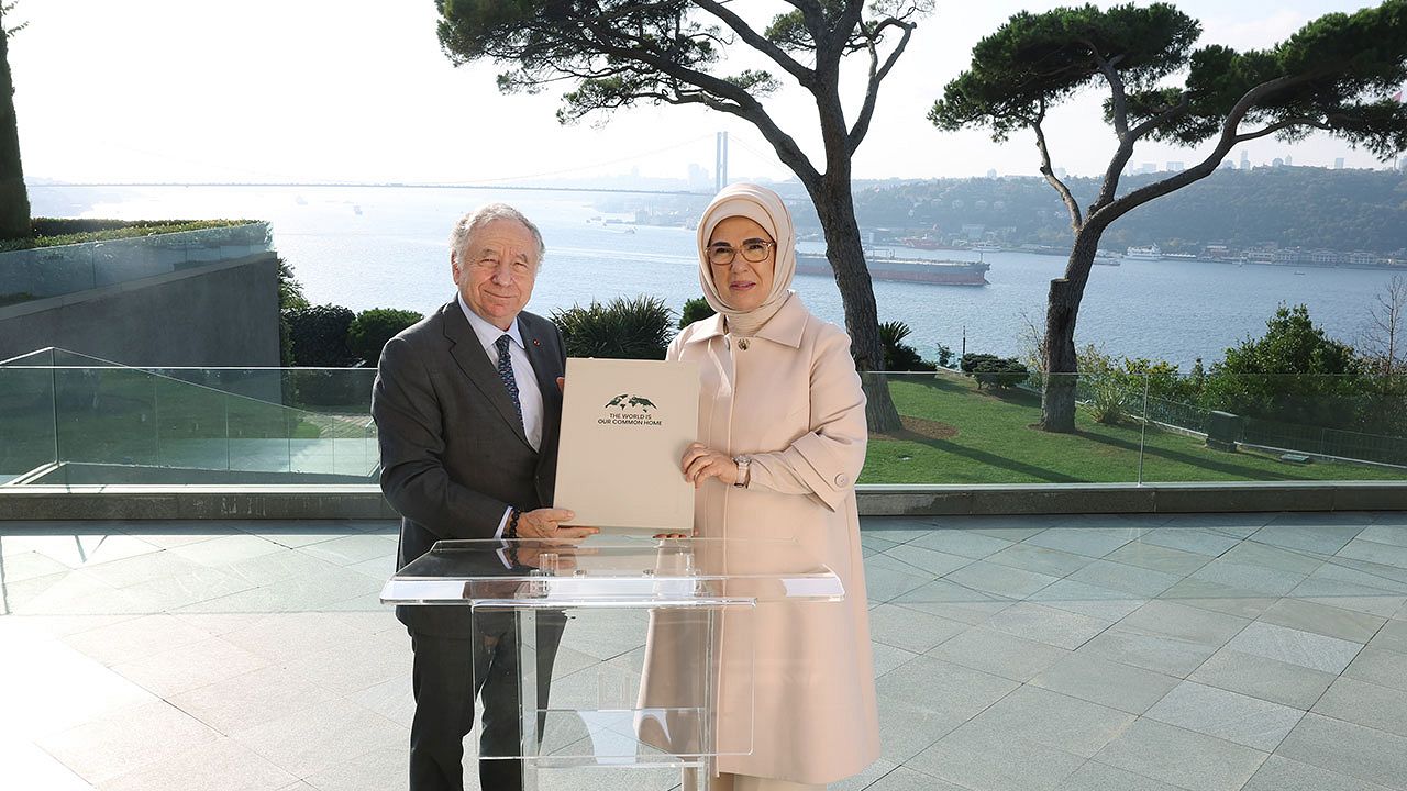 Emine Erdoğan, sosyal medya hesabı X'ten görüşmeye ilişkin yaptığı paylaşımda, BM Karayolu Güvenliği Özel Temsilcisi Jean Henri Todt ile "Sıfır Atık" temasıyla bu sene İstanbul'da gerçekleştirecekleri 31 Ekim Dünya Şehirler Günü programı öncesi bir araya geldiklerini ifade etti.