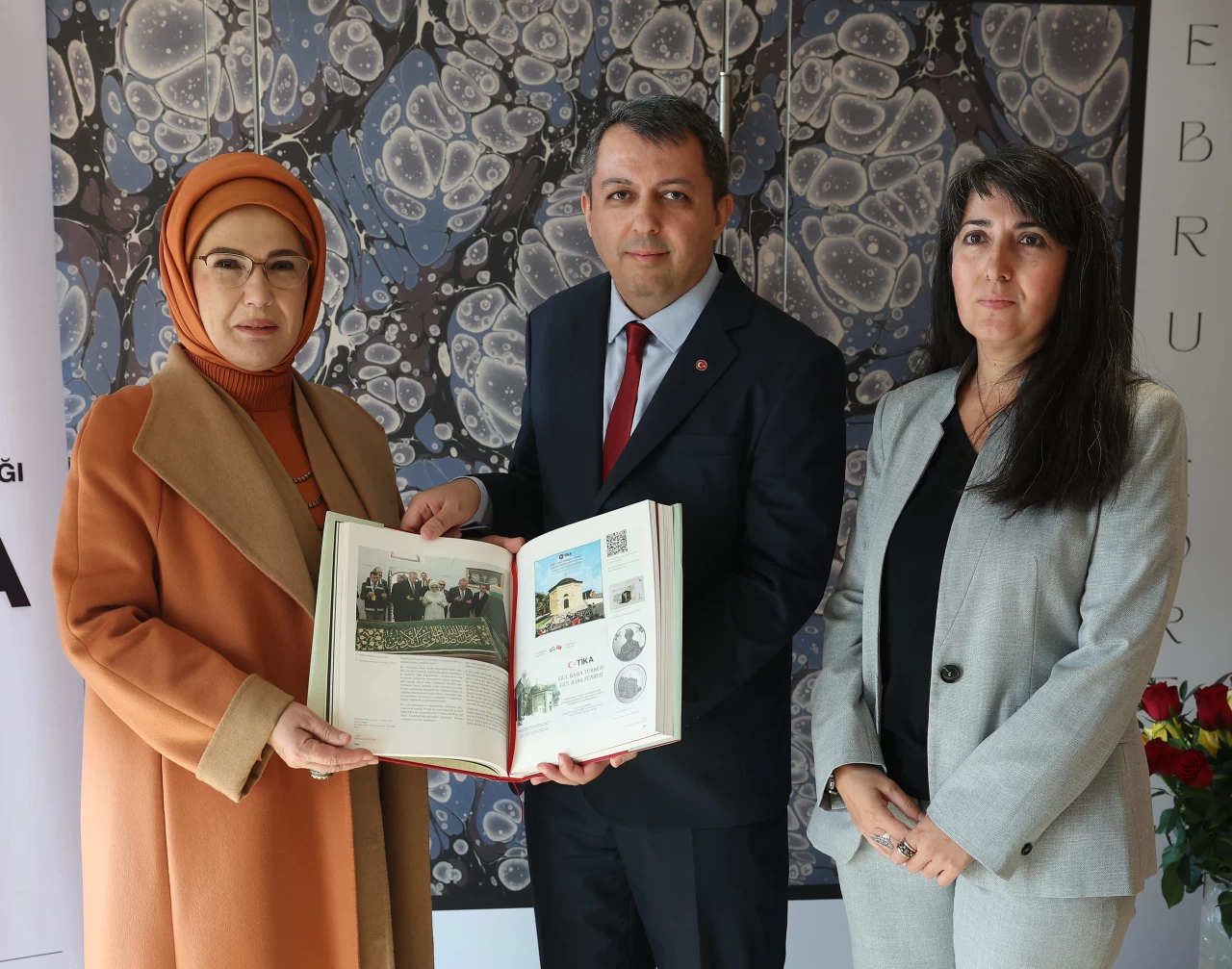 Programda kitaba ilişkin sunum gerçekleştiren yazar Yılmaz, Emine Erdoğan'a "Gül Baba ve Osmanlı Macaristanı'nda Manevi Miras" kitabını takdim etti.
