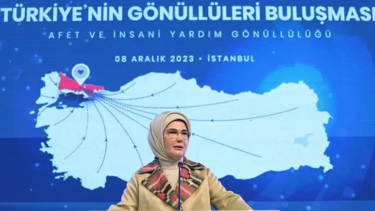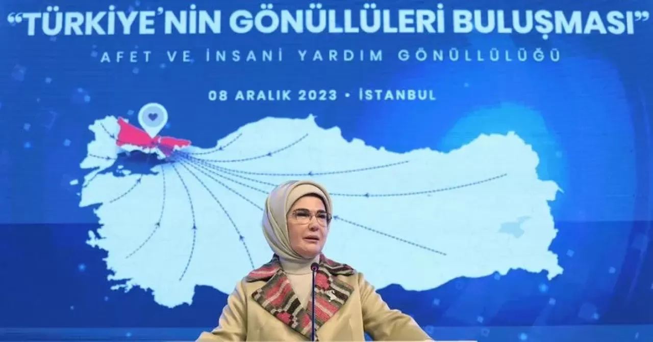 Emine Erdoğan, Şule Yüksel Şenler Vakfı'nın Sancaktepe Belediyesi Kültür Merkezi Recep Tayyip Erdoğan Kongre Salonu'nda düzenlediği "Türkiye'nin Gönüllüleri Buluşması"nda, "Afet ve İnsani Yardım Gönüllüleri" ile bir araya geldi.