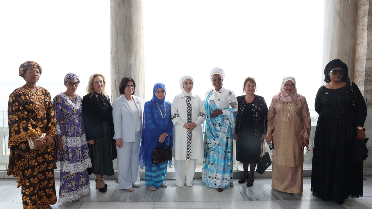 Ziyarette, Malezya Kraliçesi Tunku Azizah Aminah Maimunah Iskandariah, KKTC Cumhurbaşkanı Ersin Tatar'ın eşi Sibel Tatar, KKTC Başbakanı Ünal Üstel'in eşi Zerrin Üstel, Gambiya Cumhurbaşkanı Adama Barrow'ın eşi Fatoumatta Bah Barrow, Arnavutluk Cumhurbaşkanı Bajram Begaj'ın eşi Armanda Begaj, Sierra Leone Cumhurbaşkanı Julius Maada Bio'nın eşi Fatima Maada Bio, Burundi Cumhurbaşkanı Evariste Ndayishimiye'nin eşi Angeline Ndayishimiye, Senegal Cumhurbaşkanı Macky Sall'in eşi Marieme Faye Sall ve Mozambik Devlet Başkanı Filipe Jacinto Nyusi'nin eşi Isaura Nyusi yer aldı.
