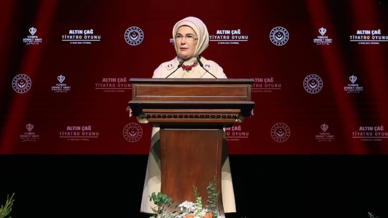 Cumhurbaşkanı Recep Tayyip Erdoğan'ın eşi Emine Erdoğan, "Hayata Köprü Sanat Projesi" kapsamında düzenlenen programda önemli açıklamalarda bulundu. İstanbul Atatürk Kültür Merkezi'nde gerçekleştirilen etkinlikte, Aile ve Sosyal Hizmetler Bakanlığı işbirliğiyle, Türkiye Diyanet Vakfı İstanbul Gönüllü Koordinatörlüğü'nün katkılarıyla devlet himayesindeki çocuklardan oluşan "Altın Çağ" adlı tiyatro oyunu sergilendi.
