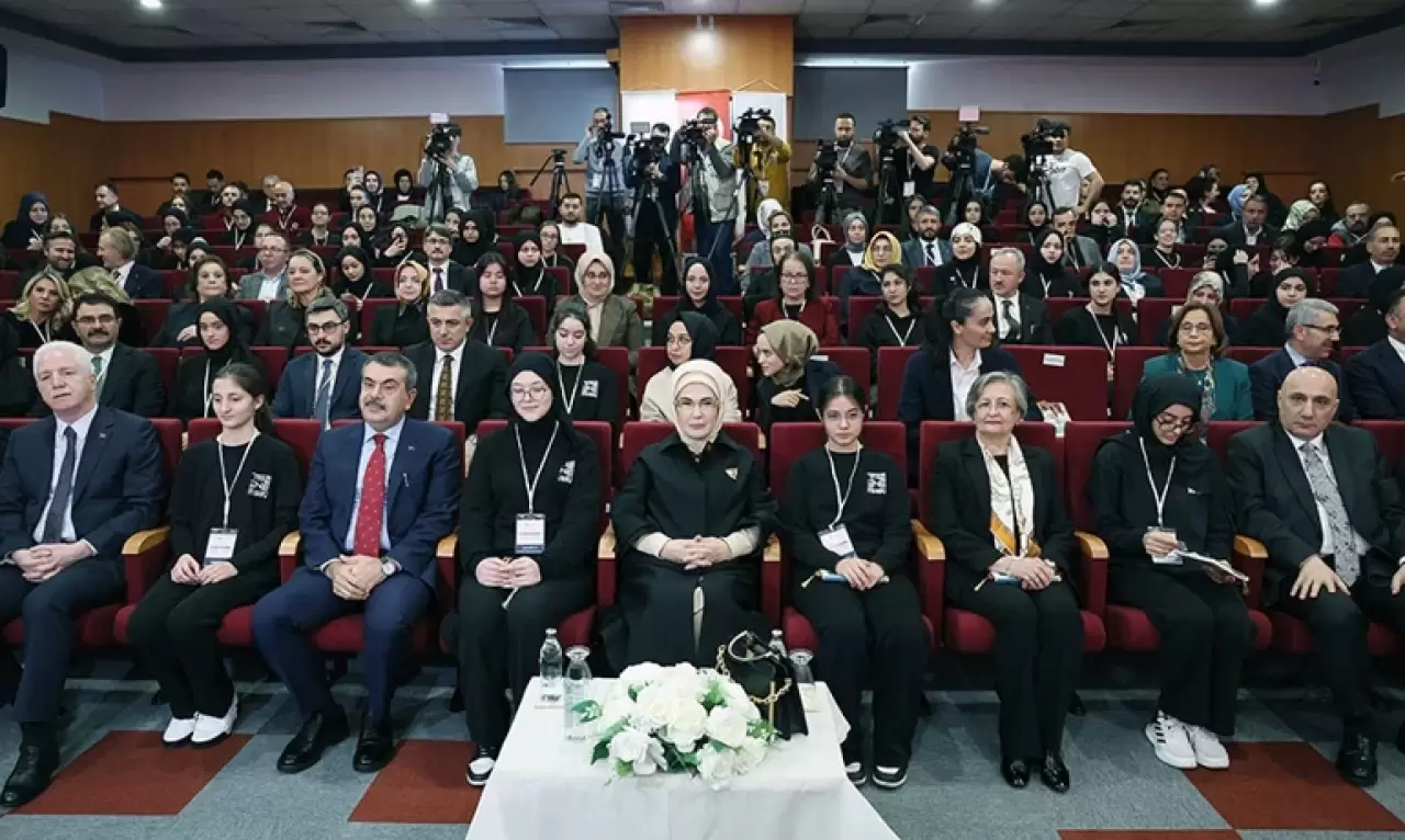 Emine Erdoğan, “Okul hayatının bir başı, sonu var. Günü gelince diplomanızı alıyor ve okul kapılarından çıkıp gidiyorsunuz. Ama kitapla kurulan ilişki öyle mi? Kitapların hikmeti ve büyülü dünyasına bir kez adım attınız mı o dünyanın bir parçası olursunuz. İç aleminiz, fikir hayatınız, gönül eviniz ihya olur. Keşfedebileceklerinizin sınırsızlığını bilmek öğrenme aşkını her zaman taze tutar. O nedenle kütüphane okulların kalbidir, ruhudur, can damarıdır. Nitelikli kitaplarla dolu kütüphanelere sahip okullarda öğrenim bir takvime bağlı olmaktan çıkar; nefes alıp vermek gibi sürekli hale gelir. Ömür boyu devam edecek bir okuma ve öğrenme kültürüne dönüşür. Biz öğrencilerimizin sadece kendisine sunulan bilgiyi değil, her şeyden önce öğrenmeyi öğrenmesini istiyoruz. Çünkü bir konudaki kendini eğitme yetisi kazanmak başlı başına bir özgürlüktür. Kütüphane ile sıkı bir ilişki kuran her öğrenci bu donanımı kazanır. Böylece özgün, üretken ve eleştirel düşünme becerisine sahip, hayatı yorumlayabilen ve topluma katkı sağlayan özgüvenli bir birey olarak yetişir Kütüphanelerin kapıları öğrenmek isteyen herkese açıktır. Bu örnek projenin temelinde de böyle bir felsefe var. Okul kütüphaneleri öğrencileri için sık sık çalacakları bir dost kapısı yapmayı hedefliyor. Atölye çalışmaları, söyleşiler, yazar buluşmaları gibi faaliyetlerle bir cazibe merkezi haline getiriyor. Her birinde bulunan en az 4 bin kitaplık koleksiyon öğrencilerin eğitim hayatlarına büyük katkılar yapacak kalibrededir. Bu kitaplar elden ele geçecek, yüzlerce, binlerce öğrencimizin zihnine tohumlar ekecektir. Biz bu tohumların meyvelerini niteliği her nesil artan bir toplum olarak toplayacağız" dedi.