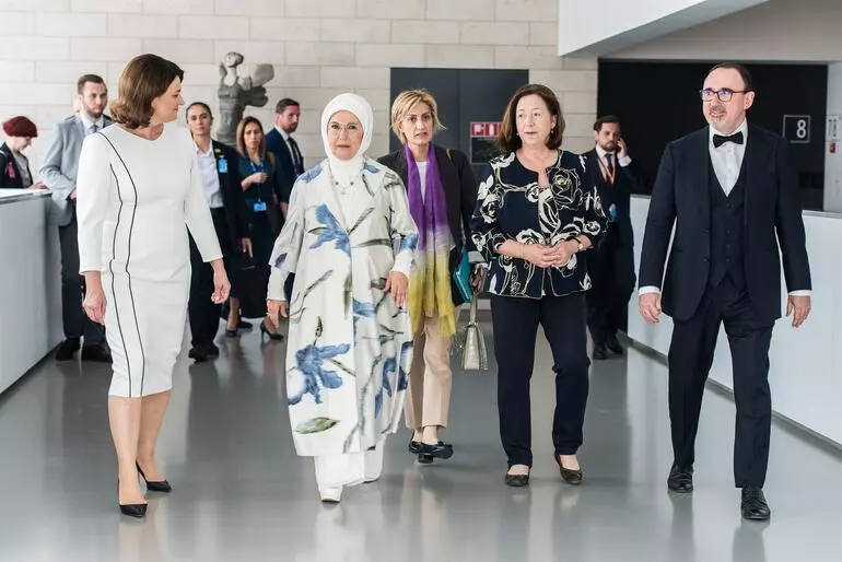 Emine Erdoğan'ın katıldığı müze ziyaretinde, Litvanya Cumhurbaşkanı Gitanas Nauseda’nın eşi Diana Nausediene ve NATO Genel Sekreteri Jens Stoltenberg’in eşi Ingrid Schulerud da yer aldı.