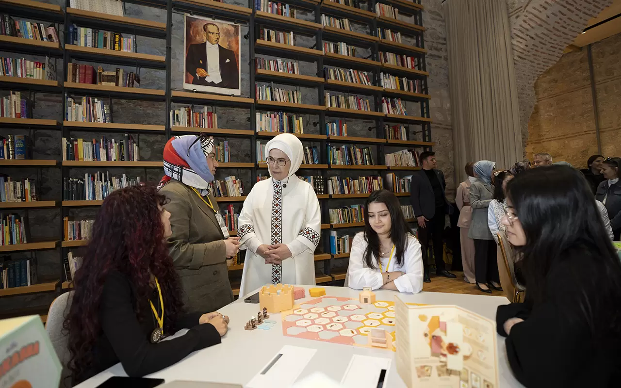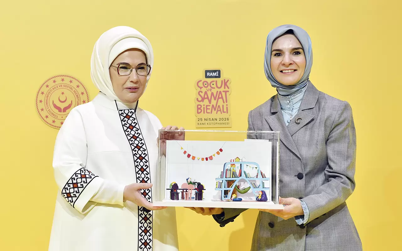 Emine Erdoğan, Aile ve Sosyal Hizmetler Bakanlığı himayelerinde Kültür ve Turizm Bakanlığı ev sahipliğinde Rami Kütüphanesi'nde düzenlenen Rami Çocuk ve Sanat Bienali'nin açılışına katıldı.