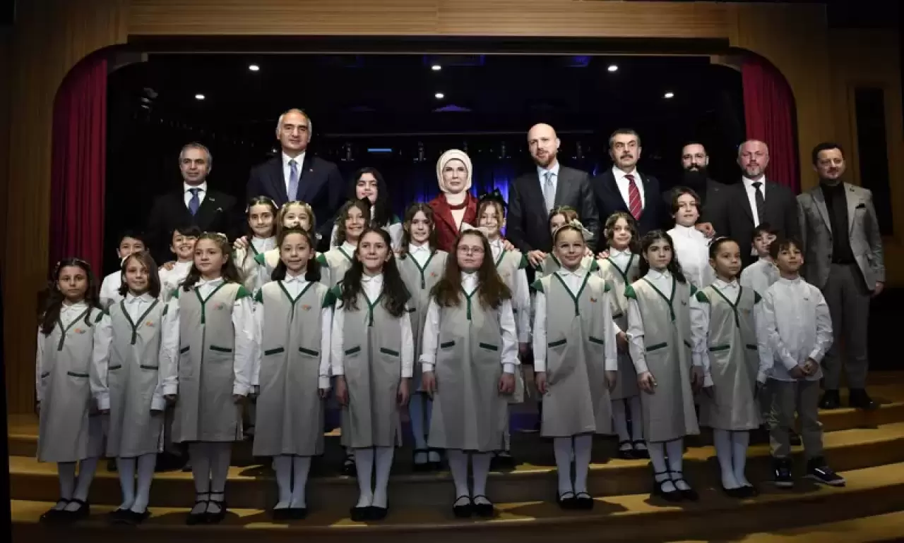 Emine Erdoğan, Palet Türk Müziği İlkokulunun yalnızca bir müzik okulu değil, milli kimliğin ve kültürel hafızanın geleceğe taşındığı özel bir merkez olduğunu vurgulayarak, “Türk müziği toplumu görünmez bağlarla birbirine bağlayan vazgeçilmez bir unsurdur” dedi.
