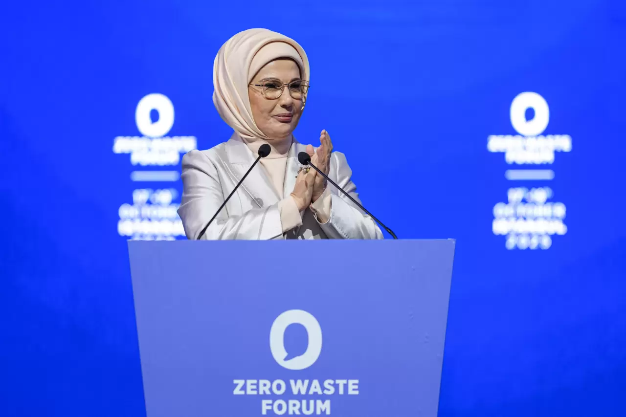 Emine Erdoğan, Sıfır Atık Vakfı tarafından, Çevre, Şehircilik ve İklim Değişikliği Bakanlığı, Tarım ve Orman Bakanlığı, Birleşmiş Milletler (BM) Çevre Programı (UNEP) ve BM-Habitat iş birliğiyle "Sıfır Atık Hareketi: İnsan, Mekan, Dönüşüm" temasıyla İstanbul'da düzenlenen Uluslararası Sıfır Atık Forumu'na katıldı.