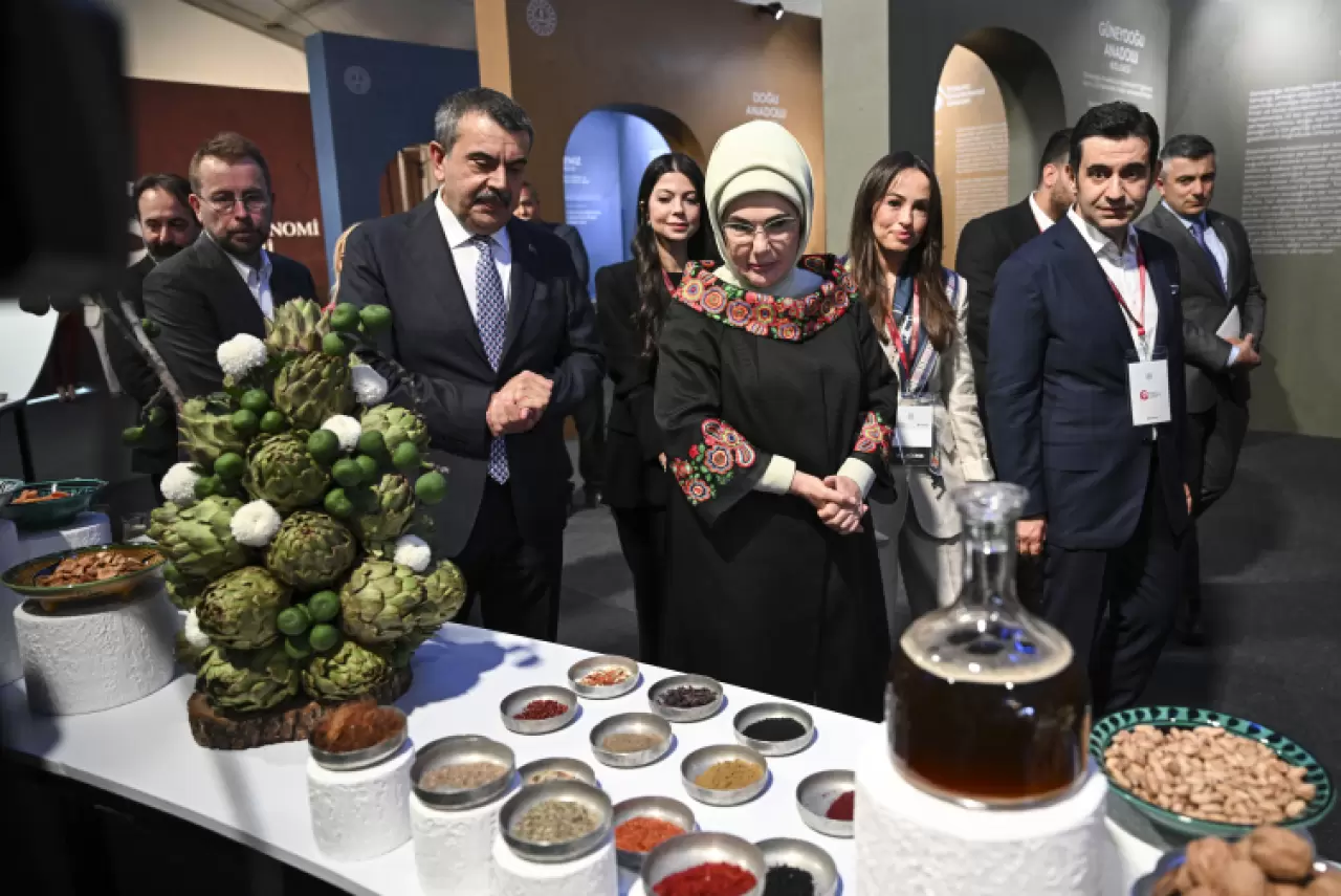 Emine Erdoğan, Türk mutfağının geniş yelpazesiyle vejetaryen ve vegan tercihlere kadar her ihtiyacı karşılayan reçetelere sahip olduğuna işaret ederek, "Tüm bunlara ek olarak mutfağımız başlı başına bir şifa merkezidir. Küresel sağlık göstergelerine baktığımızda, Batı tipi beslenmeye bağlı kronik hastalıkların hızla arttığını görüyoruz. İşte bu yüzden tariflerimizin sağlığa olan iyileştirici etkilerini ön plana çıkarmalıyız. Bu noktada çağın ruhunu yakalayacak yeni bir anlatı kurmanın çok önemli olduğunu düşünüyorum." dedi.